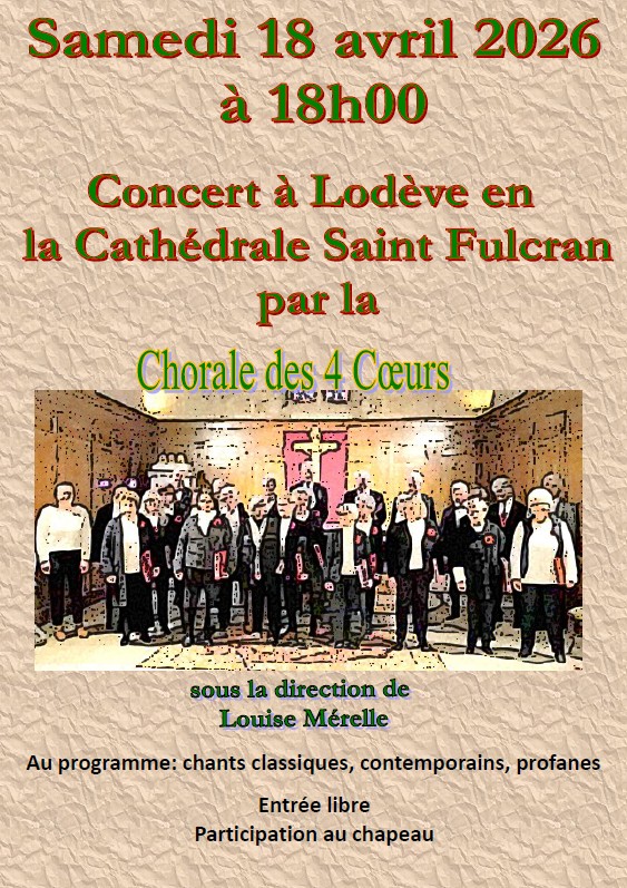 Concert à la Cathédrale Saint Fulcran par la Chorale des 4 Coeurs dans Concert, Culture, Rencontre, Tout public / familles Dans 18 avril 2026 Durée 18h00