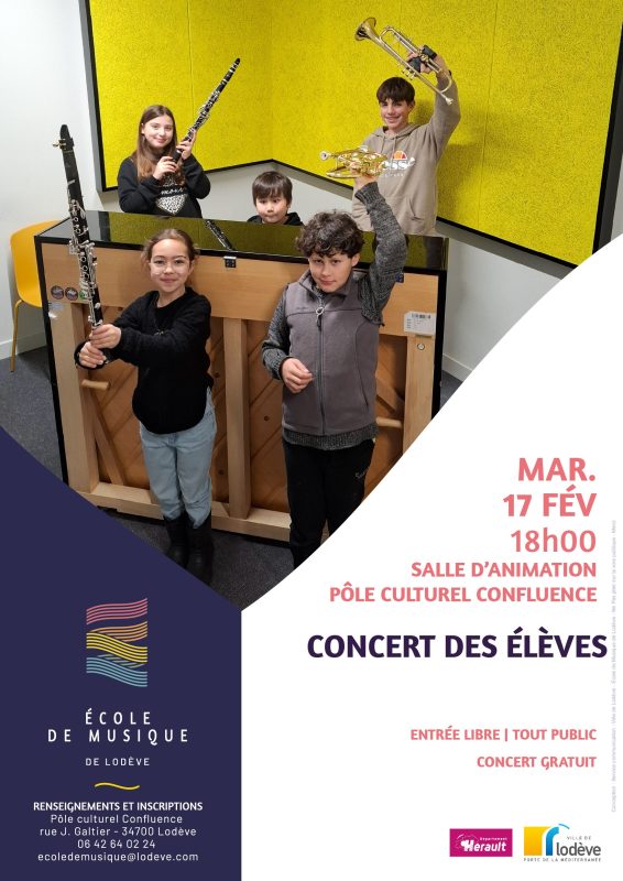 École de musique de Lodève : Concert des élèves dans Concert, Culture, Education, Enfants, GRATUIT, Rencontre, Tout public / familles Dans 17 février 2026 Durée 18h00