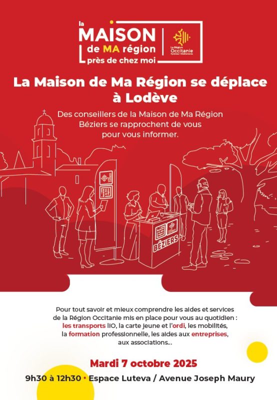 La Maison de Ma Région se déplace à Lodève dans Culture, Rencontre, Tout public / familles Dans 7 octobre 2025 Durée 9h30 - 12h30 Cinéma Lutéva Av. Dr Joseph Maury, 34700 Lodève