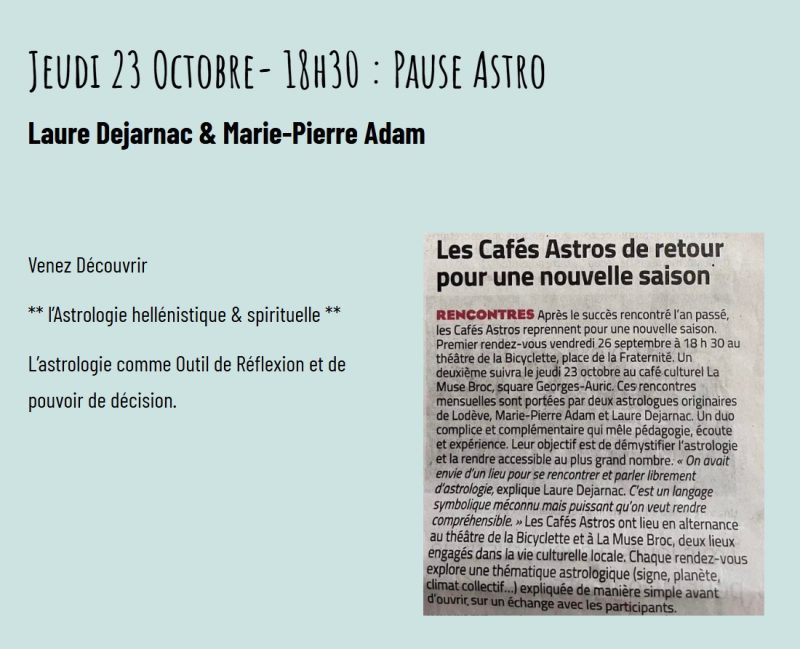 La Muse’Broc : Pause Astro dans Culture, Rencontre, Santé, Tout public / familles Dans 23 octobre 2025 Durée 18h30