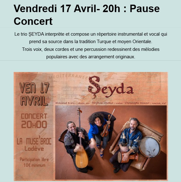 La Muse’Broc : Pause Concert dans Concert, Rencontre, Spectacle, Tout public / familles Dans 17 avril 2026 Durée 20h00