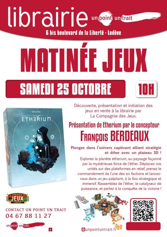 Librairie un point un trait : Matinée jeux dans Culture, Rencontre, Sport et loisirs, Tout public / familles Dans 25 octobre 2025 Durée 10h00 Librairie Un Point Un Trait 6 bis Bd de la Liberté, 34700 Lodève