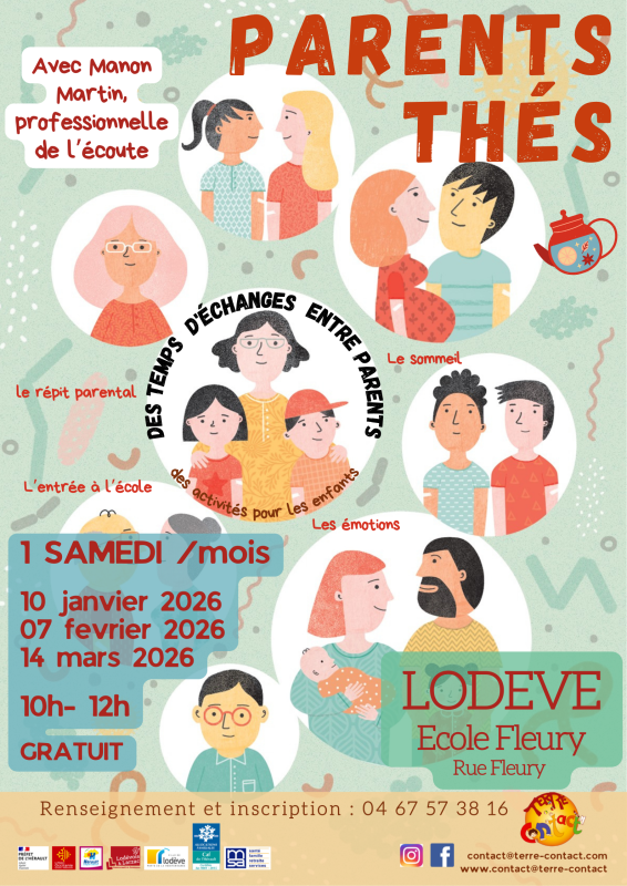 Parents Thés : Des temps d’échanges entre parents dans Culture, Education, Enfants, Familles, Rencontre, Tout public / familles Dans 14 mars 2026 Durée 10h00 - 12h00 École maternelle Fleury Rue Fleury, 34700 Lodève