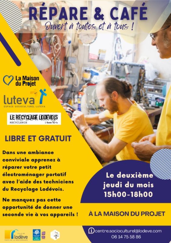 Répare & Café, libre et gratuit dans Atelier, Culture, GRATUIT, Rencontre, Tout public / familles Dans 12 mars 2026 Durée 15h00 - 18h00 Maison du Projet 45 grand rue 34700 Lodève