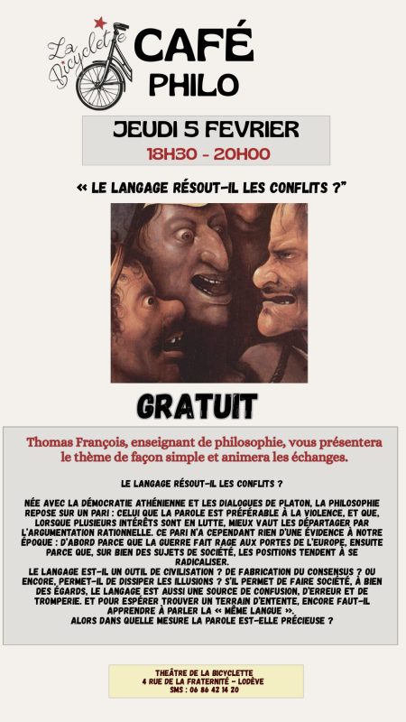 Théâtre de la Bicyclette : Café Philo dans Culture, GRATUIT, Rencontre, Tout public / familles Dans 5 février 2026 Durée 18h30 - 20h00