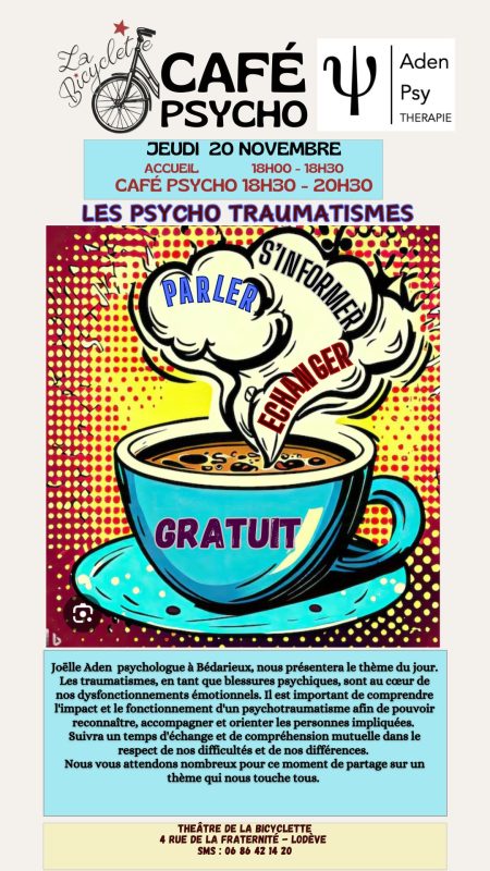Théâtre de La Bicyclette : Café Psycho dans Culture, Rencontre, Sport et loisirs, Tout public / familles Dans 20 novembre 2025 Durée 18h00 - 18h30
